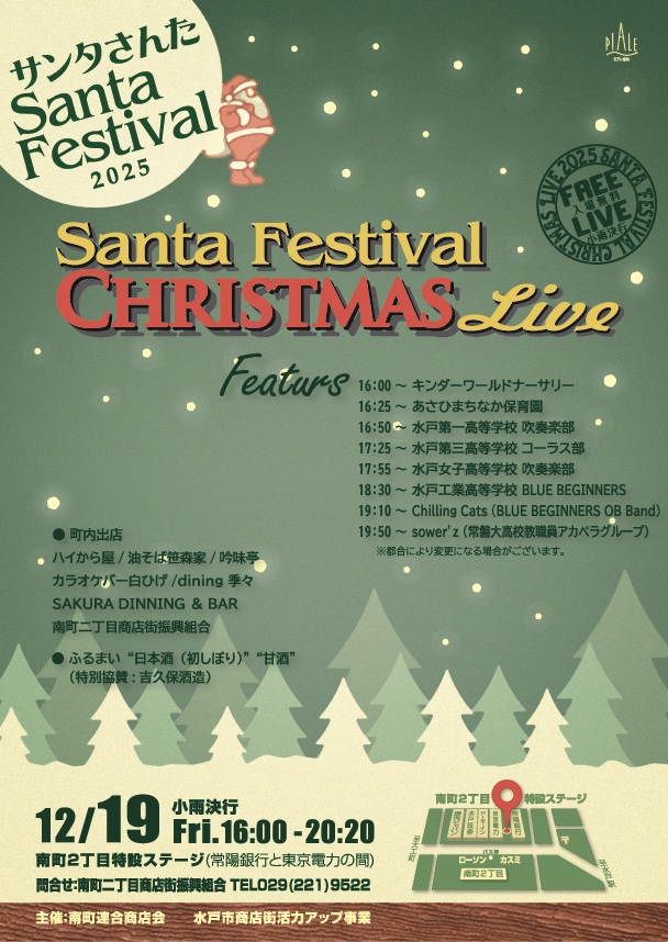 【町内出店】 ・ハイから屋 本店 ・SAKURA DINING & BAR ・シーボン水戸店 ・カルチャースタジオMuguet(ミュゲ) ・吉久保酒造(特別協力) ・南町二丁目(生ビール400円)